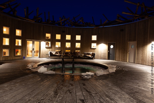 Das kreisförmige Hauptgebäude mit Bad, Sauna und Restaurant ist das Herzstück des spektakulären Wellnesshotels im Norden Schwedens. Vom Schwimmen unter der Mitternachtssonne bis zum Bad unter dem glänzenden Polarhimmel und den Nordlichtern im Winter tauchen Sie tief ein in die Elemente der arktischen Natur, aber hinterlassen dabei nur einen minimalen ökologischen Fußabdruck.