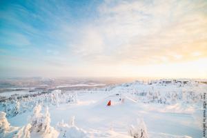 Finnland Wintermärchen, eine Woche traumhafter Urlaub mit bezauberndem Ausblick vom Hügel des Berges und inkludiertem Aktivitätenprogramm.
