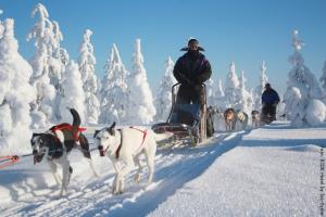 - Husky-Safari, inkl. Mittagessen ca. 25-30 km, 6,5 Std. (Schlittenfahrt ca. 4 Std.): 345 €
