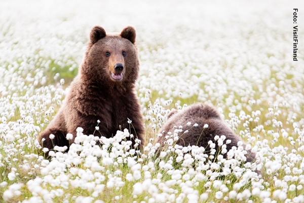 In den einsamen Gebieten rund um Kuhmo leben noch Bären und Wölfe. Ihr Hotel Kalevala bietet vielfältige Aktivitäten an, u.a. Bärensafaris. Fragen Sie uns!